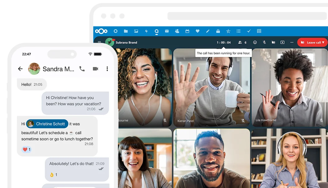 Nextcloud Talk ile çevrimiçi konuşmalarınızı, toplantılarınızı ve video konferanslarınızı gizli ve güvende tutun.